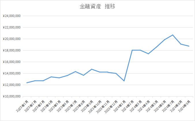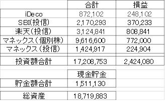 総資産は、下がり基調。2000万円の壁で叩き落とされている。やはり2000万円の壁は厚いらしい。
