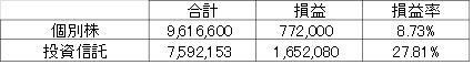 今回から、集計方法を変えて、個別株と、投資信託別の損益率も確認する。