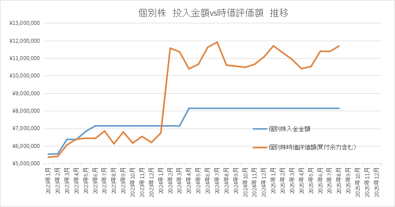 これまでの推移をみると、2024年1月が分岐点だったな。元々、投資信託はしっか利益が出ていたが、2024年1月以前は、個別株のマイナスが、投資信託のプラスを消してました。